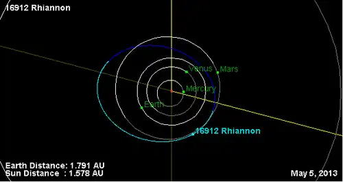 - Орбита астероида Рианнон и его положение в Солнечной системе
