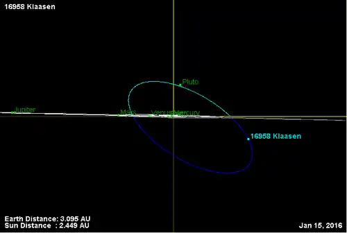 - Орбита астероида Клаасен и его положение в Солнечной системе