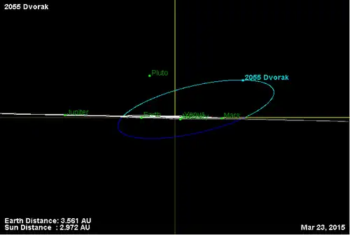 - Орбита астероида Дворжак и его положение в Солнечной системе