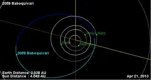 - Орбита астероида Бабиокивари и его положение в Солнечной системе