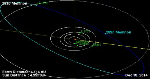 - Орбита астероида Мемнон и его положение в Солнечной системе