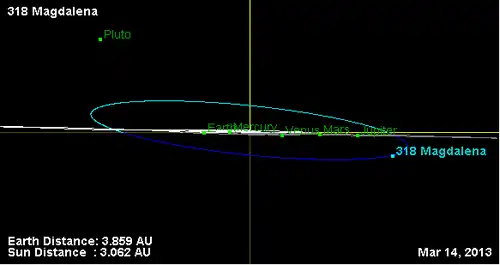 - Орбита астероида Магдалена и его положение в Солнечной системе