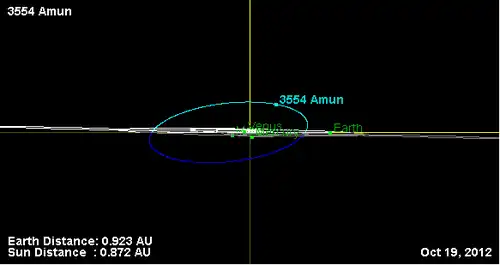 Астероид обладает довольно вытянутой орбитой, из-за которой в процессе своего движения вокруг Солнца он пересекает не только орбиту Земли, но и Венеры. Амон один из немногих астероидов, которые подходят к Венере практически вплотную; так, во время сближений в 1964, 2034 и 2103 годах его расстояние до планеты будет равняться всего 10 млн км[2].