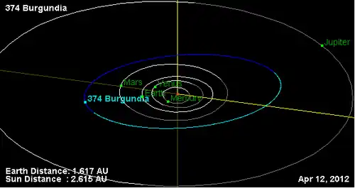 (374) Бургундия (фр. Bourgogne) — небольшой астероид главного пояса, который принадлежит к светлому спектральному классу S и входит в состав семейство Гефьён. Он был открыт 18 сентября 1893 года французским астрономом Огюстом Шарлуа в обсерватории Ниццы и назван в честь Бургундии, исторического региона на востоке Франции[1].