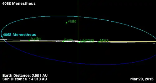 - Орбита астероида Менесфей и его положение в Солнечной системе