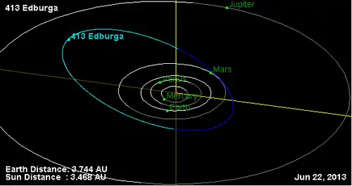 - Орбита астероида Эдбурга и его положение в Солнечной системе