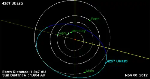 - Орбита астероида Убасти и его положение в Солнечной системе