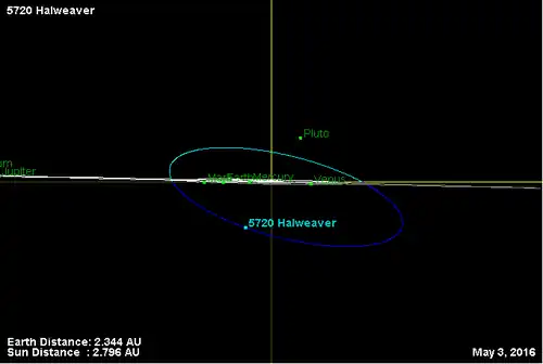 - Орбита астероида Галуивер и его положение в Солнечной системе