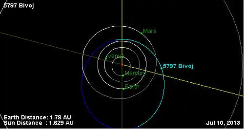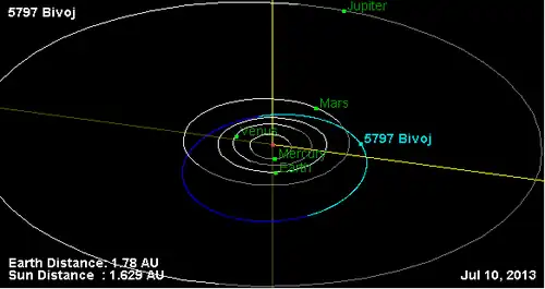 - Орбита астероида Бивой и его положение в Солнечной системе