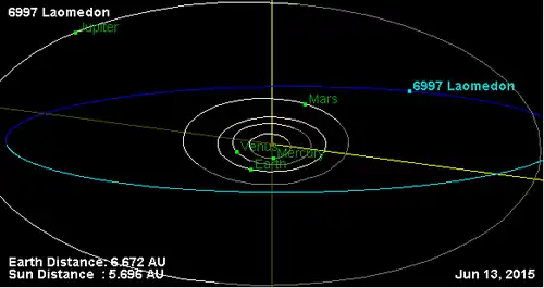 - Орбита астероида Лаомедон и его положение в Солнечной системе
