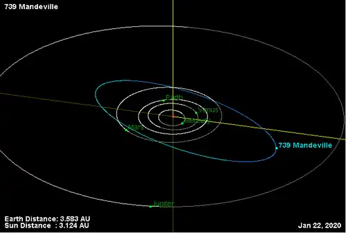 (739) Мандевил (лат. Mandeville) — астероид главного пояса, который относится к спектральному классу X. Он был открыт 7 февраля 1913 года американским астрономом Джоэлом Меткалфом в обсерватории Уинчестера и назван в честь города Мандевилл на Ямайке[2].