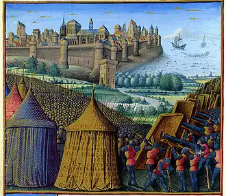 Джеймс Дойл. Стефан Блуасский и Генрих Плантагенет обсуждают через реку Темзу вопросы престолонаследия в Английском королевствеОсада Аскалона крестоносцами в 1153 году