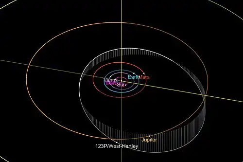 - ↑ Elements and Ephemeris for 123P/West-Hartley. Minor Planet Center. Дата обращения: 26 мая 2016.