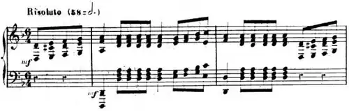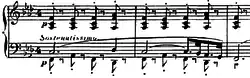 Далее снова звучат шестнадцатые ноты, но уже в ре мажоре, при этом в басу играется такой же ритм, как и в первых двух разделах. Произведение заканчивается тремя тихими аккордами в ре миноре.