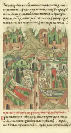 - ↑ Сост. Д.и н. Ю.В. Селезнёв. Русско-ордынские конфликты XIII-XV веков. Отв. ред. док.ист.наук А.В. Кузьмин. Рез. Д.и.н. В.Н. Глазьев, к.и.н. доц. О.В. Скобелкин. Изд. 2-е исправленное. М. Квадрига. 2014 г. Таблица № 78. стр. 112. ISBN 978-5-91791-135-9.