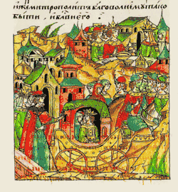 - 1 2 Сост. Д.и н. Ю. В. Селезнёв. Русско-ордынские конфликты XIII—XV веков. Отв. ред. док. ист. наук А. В. Кузьмин. Рез. д.и.н. В. Н. Глазьев, к.и.н. доц. О. В. Скобелкин. Изд. 2-е исправленное. М. Квадрига. 2014 г. Таблица № 90. стр. 125. ISBN 978-5-91791-135-9.