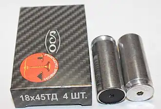 18×45 мм — патрон нелетального действия, разработанный в 1990-е годы.