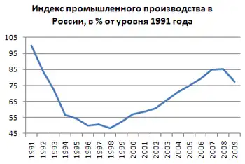 - ↑ Индексы производства по отдельным видам экономической деятельности Российской Федерации в % к 1992 году Архивная копия от 14 июня 2021 на Wayback Machine // Росстат