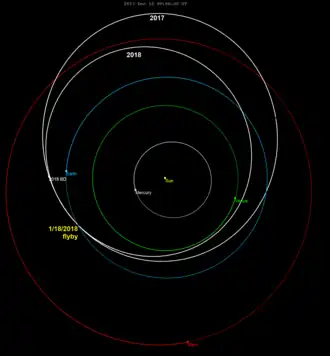 - Flyby diagram of 2018 BD, Minor Planet Center