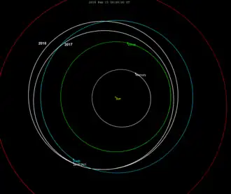 Сближение с Землёй состоялось 02 марта 2018 года в 05:54 UTC, расстояние — 112,6 тыс. км, относительная скорость 6,559 км/c (23 610 км/ч).