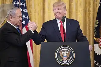 - ↑ Magid, Jacob; Ghert-Zand, Renee. Trump and Netanyahu tout 'win-win' peace plan as public gets first glimpse. The Times of Israel (28 января 2020). Дата обращения: 13 апреля 2020. Архивировано 29 февраля 2020 года.