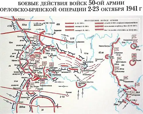- ↑ Оперативная сводка штаба 50 А 11.09.1941 г. Дата обращения: 5 сентября 2021. Архивировано 5 сентября 2021 года.