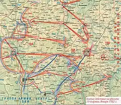 Лишь 5 января 1942 года дивизия сосредоточилась в первом эшелоне армии в районе Азарьево, Бордыкино, Наумово, Шлиппово ныне Сухиничского района Калужской области, а 6 января переходит в наступление и отбрасывает противника со станции Дабужа, захватив в плен 41 человека, из них 1 капитан. Продолжая свое наступление, 326-я стрелковая дивизия 8 января выходит на рубеж Спасское, Новое Село, Вяжички.