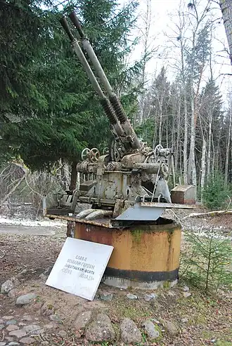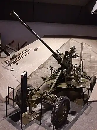 ![]() 37-мм автоматическая зенитная пушка обр. 1939 года в Военно-историческом музее артиллерии, инженерных войск и войск связи в Санкт-Петербурге | |