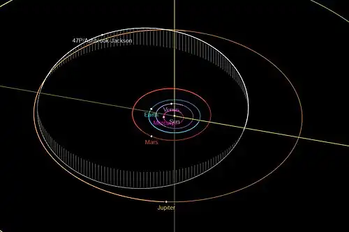 - Орбита кометы Ашбрука — Джексона и её положение в Солнечной системе