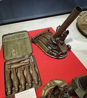 - 2-дюймовый миномёт — британский лёгкий миномёт не нуждался в сошках- наводчик во время стрельбы просто удерживал орудие за ствол.