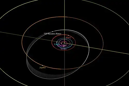 - Орбита кометы Кирнса — Гуи и её положение в Солнечной системе