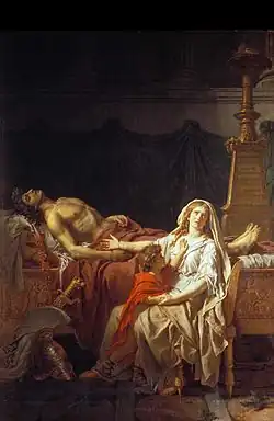 | Эгисф и Клитемнестра готовятся убить Агамемнона спящим | Clytemnestre hésitant avant de frapper Agamemnon endormi | Пьер Нарсис Герен | 1817 | 342×325 | ![]() |