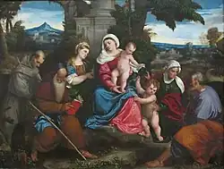 | Святое семейство со Святыми Франциском, Антонием, Марией Магдалиной, Иоанном Крестителем и Праведной Елисаветой | Бонифацио Веронезе | 1533 | 155×202 | ||