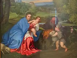 | Святое семейство на отдыхе с младенцем Иоанном Крестителем | Polidoro da Lanciano | 1530 | 81×108 | ||