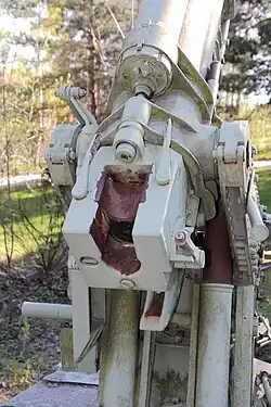 Вид на казённик пушки; виден вертикальный клиновой затвор