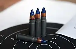 Специальная версия СП-5 производства ТПЗ. Сердечник головки изготовлен из высокоуглеродистой стали марки У12А, это увеличивает пробивное действие. Вершинка пули окрашена в синий цвет.