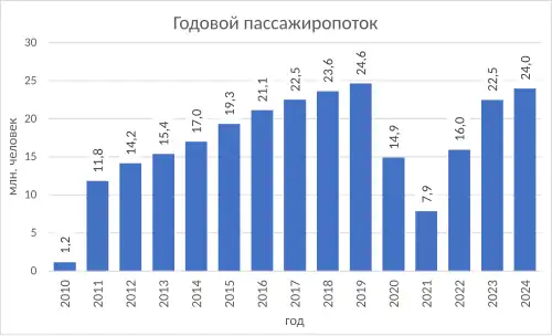 Пассажиропоток за 2023 год составил 22 495 300 человек[2].