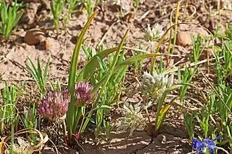 Растёт на песчаной, каменистой почве на высоте 1200–3300 м над уровнем моря. Одно растение дает 1–5 круглых или яйцевидных луковиц диаметром до 1,5 см. Цветки колокольчатые, длиной до 8 мм; листочки околоцветника белые с зелёной или фиолетовой средней жилкой[5][7][8][9].