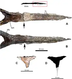 Голотип MN 7596-V представляет собой почти полную нижнюю челюсть, сохранившуюся в трёх измерениях. Он был обнаружен в формации Крато — лагерштетте, хорошо известном изысканной сохранностью окаменелостей[2], и описан в 2016 году[1].