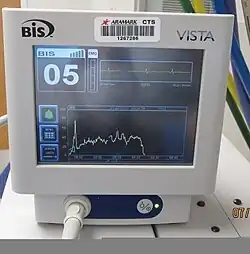 BIS-монитор показывает эмпирический индекс суммы нескольких параметров ЭЭГ. BIS-индекс это относительный показатель от 0 (молчание ЭЭГ) до 100 (полное сознание).[3] Точные детали алгоритма, используемого для создания BIS-индекса не разглашаются компанией, которая разработала его.