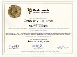 - ↑ [certification.about.com/od/certifications/p/brainbench.htm Brainbench Certifications] Источник. Дата обращения: 19 ноября 2013. Архивировано из [certification.about.com/od/certifications/p/brainbench.htm оригинала] 15 мая 2005 года. // About.com, (англ.)