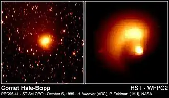 - ↑ Weaver, H. A.; Feldman, P. D.; A’Hearn, M. F.; et al. Post-Perihelion HST Observations of Comet Hale-Bopp (C/1995 O1) (англ.) // Icarus. — Elsevier, 1999. — Vol. 141, iss. 1. — P. 1—12. — DOI: 10.1006/icar.1999.6159