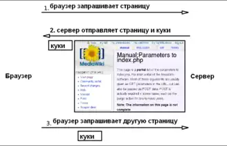 Ку́ки (англ. cookie, дословно «печенье») — небольшой набор данных, отправляемый веб-сервером и хранимый на компьютере пользователя без изменений и какой-либо обработки. Веб-клиент (обычно веб-браузер) всякий раз при обращении к соответствующему сайту пересылает эти данные веб-серверу в составе HTTP-запроса. Обычно куки применяют для[1]: