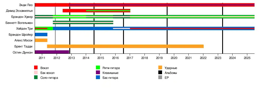 - Брэндон Хувер — соло-гитара (2010—2011, 2014—наши дни), бэк-вокал (2010—наши дни), ритм-гитара (2011—2015, 2017—наши дни)