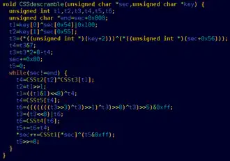 - ↑ Touretzky, David S.. Gallery of CSS Descramblers. Дата обращения: 25 февраля 2012. Архивировано 26 июля 2018 года.