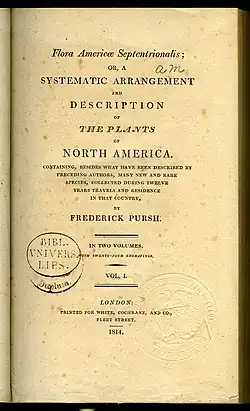 Полное название работы — Flora Americae septentrionalis; or, a systematic arrangement and description of the plants of North America. Containing, besides what have been described by preceding authors, many new and rare species, collected during twelve years travels and residence in that country — «Flora Americae septentrionalis, или систематическое расположение и описание растений Северной Америки. Включающее, помимо описанных предшествующими авторами, множество новых и редких видов, собранных в течение двенадцатилетних путешествий и проживания в этой стране».