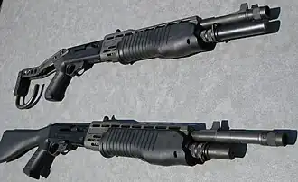 - ↑ "Shotguns include the Benelli M3T and M4, as well as the Franchi SPAS-12 and Remington 870"