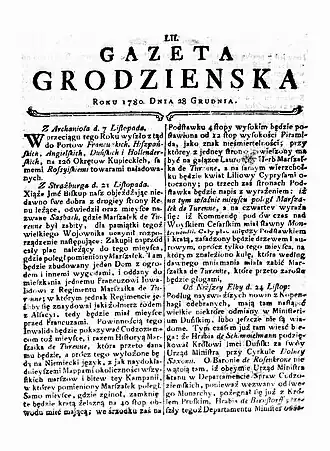 По требованию короля Станислава Августа Понятовского в Гродно была учреждена должность газетного цензора, под нажимом которого редакционные статьи заменены известиями из других газет[2].
