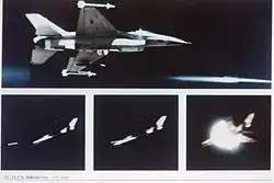 F-16 Fighting Falcon (англ. дословно — боевой сокол, — назван так в честь талисмана Военно-воздушной академии США в Колорадо Спрингс[7]) — американский многофункциональный лёгкий истребитель четвёртого поколения[8]. Распространенное прозвище самолёта в строевых частях USAF — «Viper» (русс. Гадюка)[9]