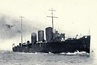 - ↑ ROYAL NAVY VESSELS LOST and DAMAGED, JUNE to DECEMBER 1914 (англ.). Naval History. Дата обращения: 6 марта 2024.